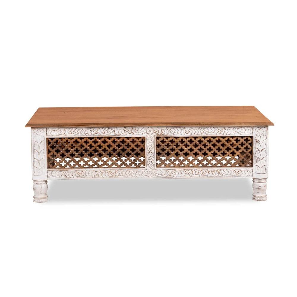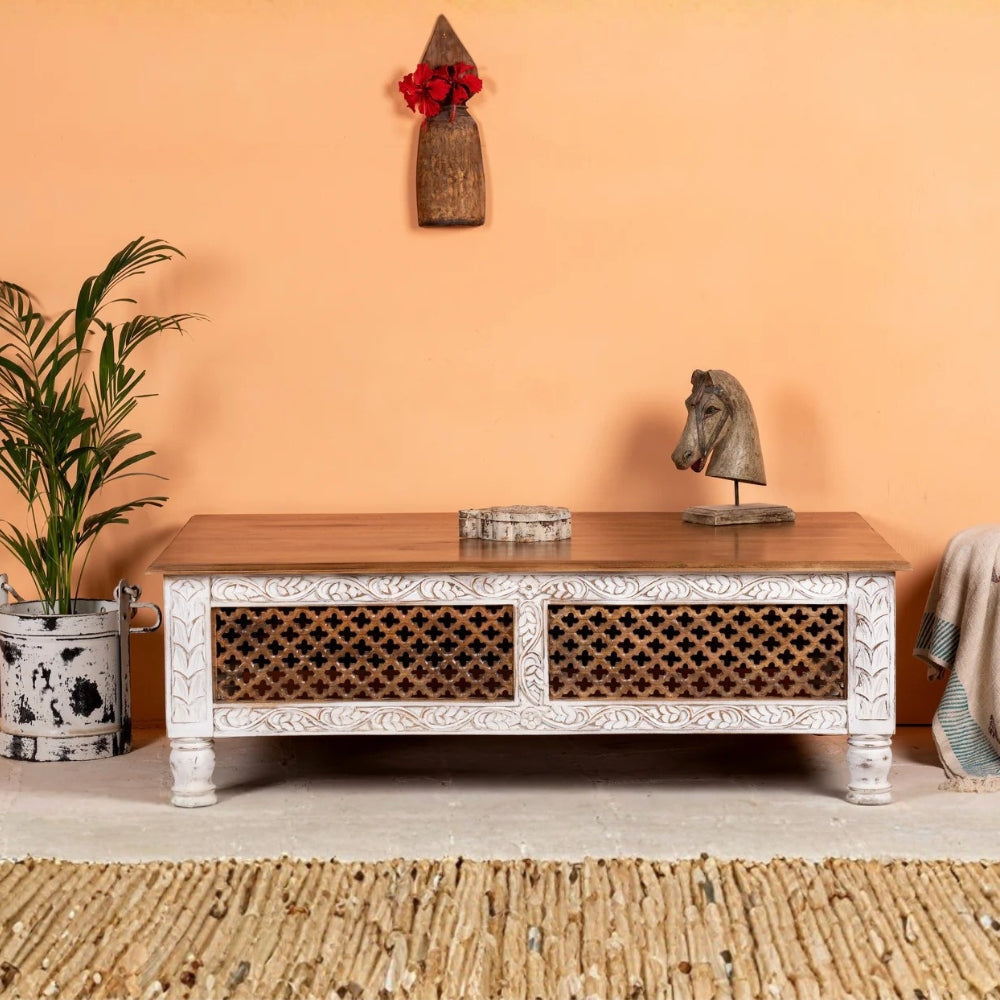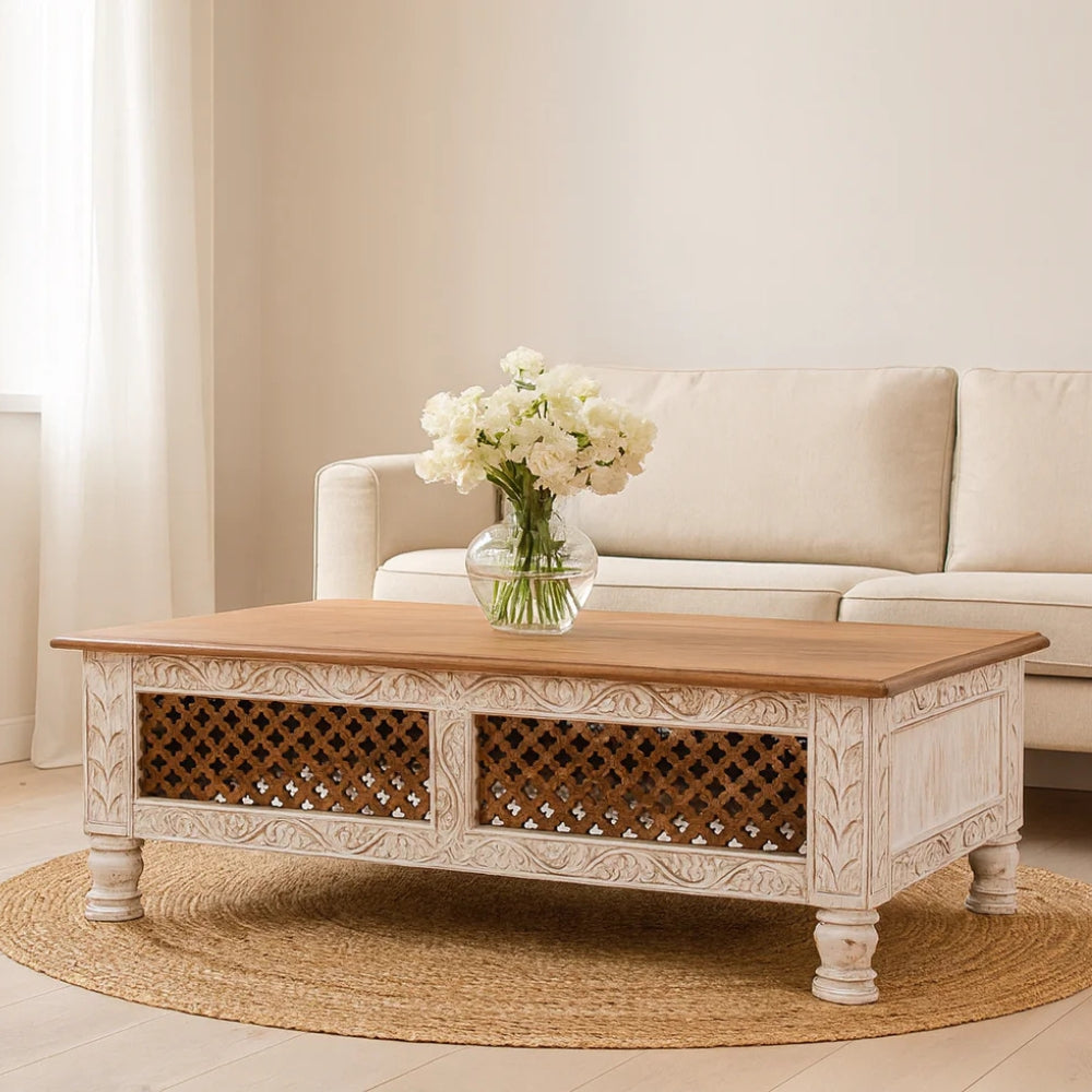 Hand Carved Mango Wood Coffee Table – Natural Finish
