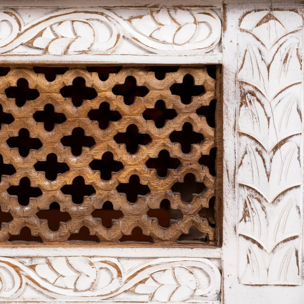 Enhance your living space with the timeless charm of this Hand Carved Mango Wood Coffee Table, beautifully crafted from solid mango wood for strength, durability, and natural beauty. Designed to be both functional and artistic, this coffee table features intricate floral carvings along the frame, showcasing the craftsmanship of skilled artisans and adding a rich decorative touch to your living room.