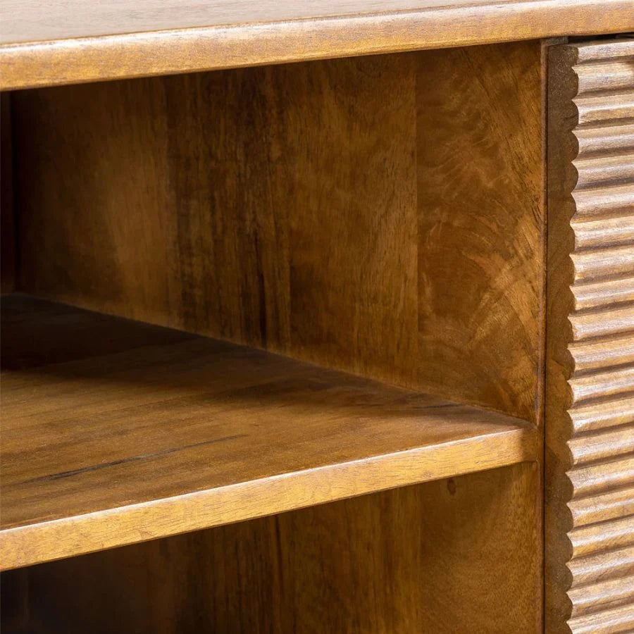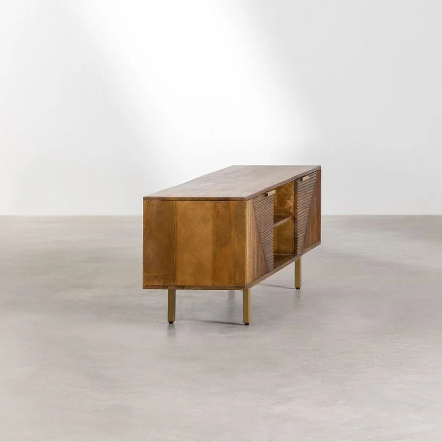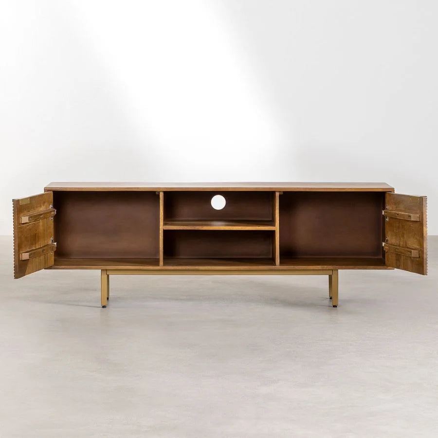 Bring warmth and timeless elegance to your living room with the Tatvaacasa Mango Wood TV Stand, crafted from premium solid mango wood known for its durability and rich natural grain. Its sturdy construction ensures long-lasting use, while the smooth, polished finish highlights the wood’s unique textures and natural tones.
