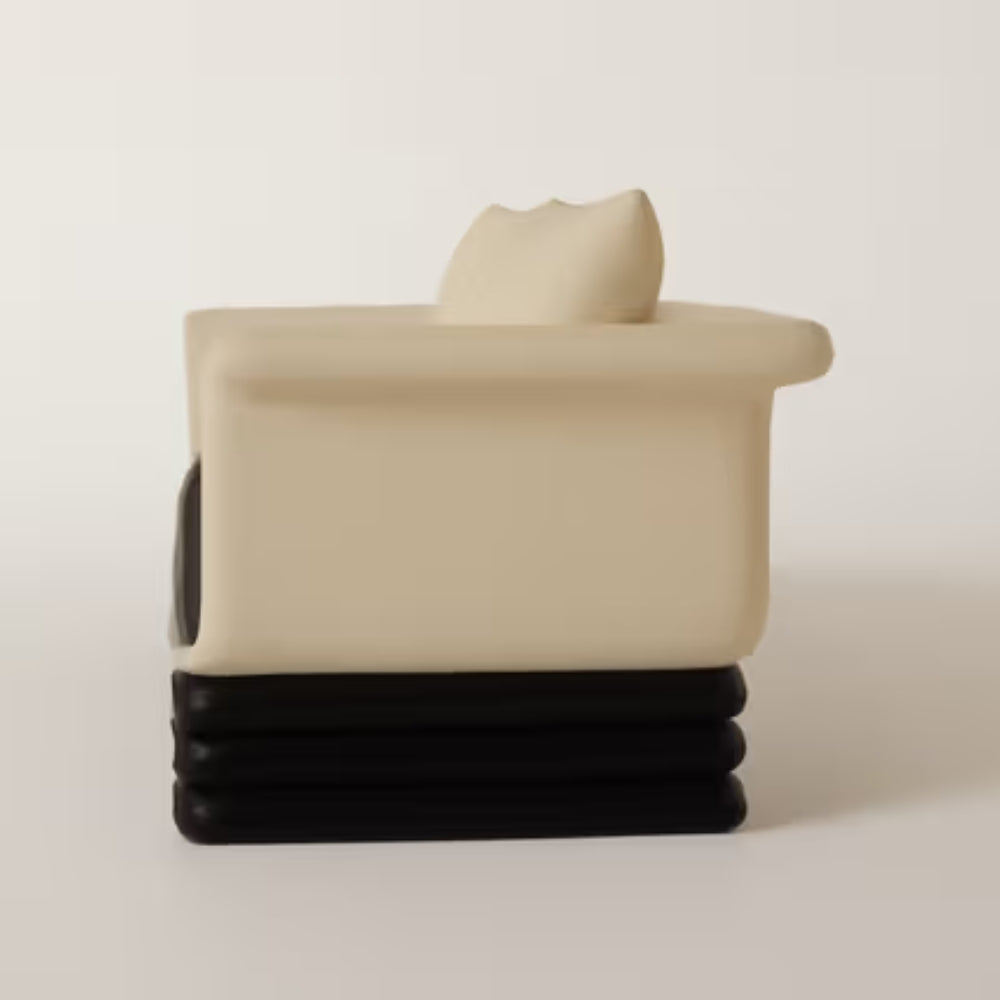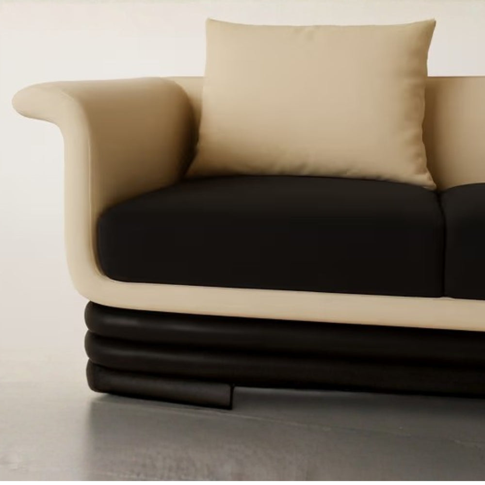 Elevate your living space with the Tatvaacasa Modern 3-Seater Sofa, a perfect fusion of sculptural elegance and everyday comfort. Designed to make a bold statement, this sofa features a creamy neutral upholstered frame beautifully contrasted with deep black seat cushions, creating a refined and contemporary aesthetic.
