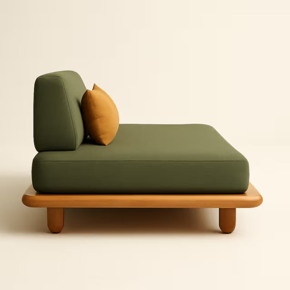 The Tatvaacasa Mosswood Recline Sofa is a seamless blend of timeless craftsmanship and modern comfort. Designed with a natural oak wood base and softly rounded legs, this low-profile piece creates a grounded yet inviting presence in any space.