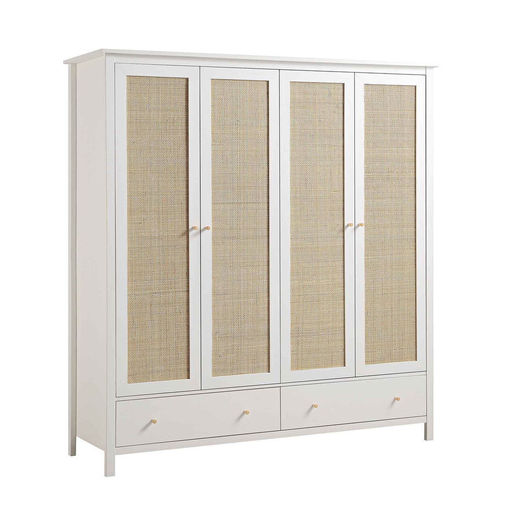 Nordic Rattan 4-Door Wardrobe with 2 Drawers, White