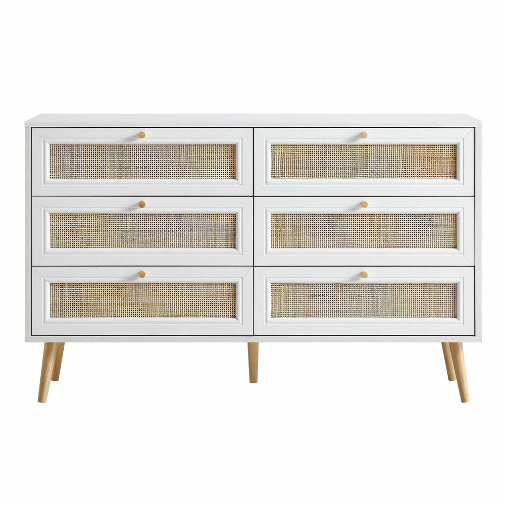 Nordic Woven Rattan Chest of 6 Drawers, White