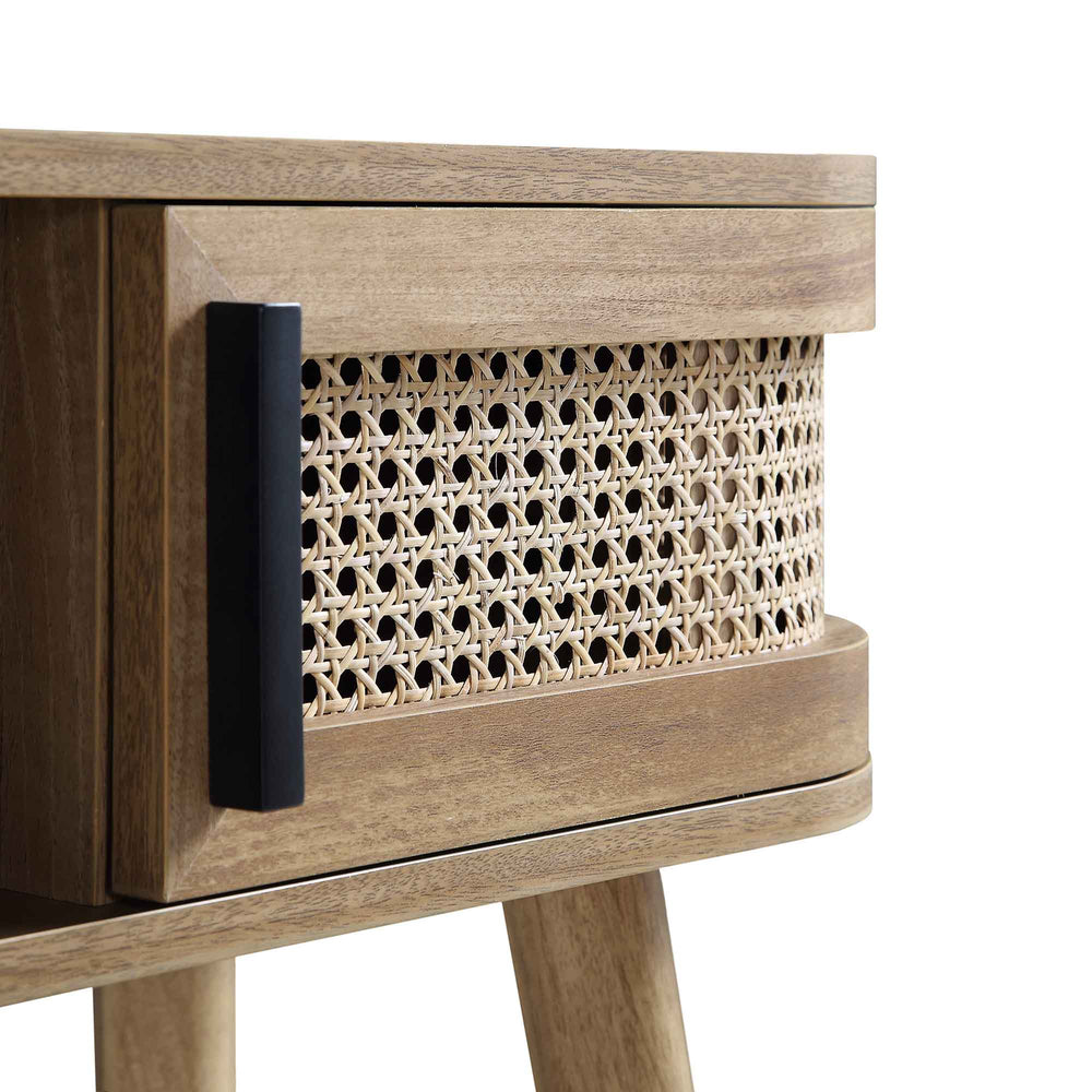 - Curved-profile design featuring two beautifully crafted rattan doors.