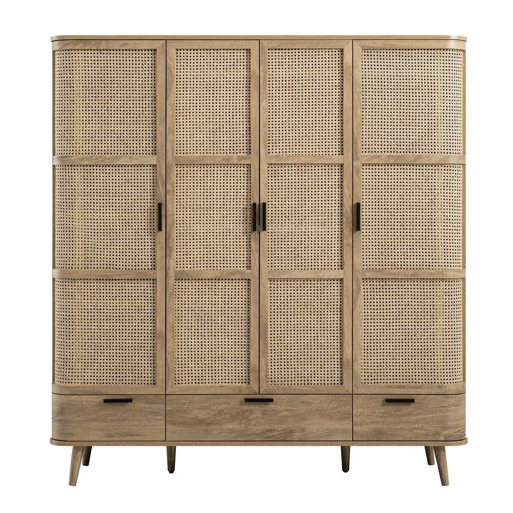 - Spacious, stylish, and practical — the Regal Curved Rattan 4-Door Wardrobe in Natural is the ideal storage solution for larger bedrooms.