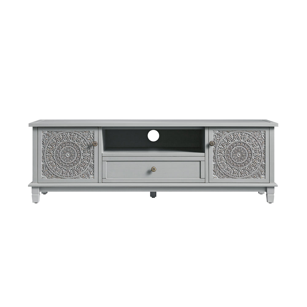 • Features beautiful carved drawer and door fronts for an elegant boho-chic look