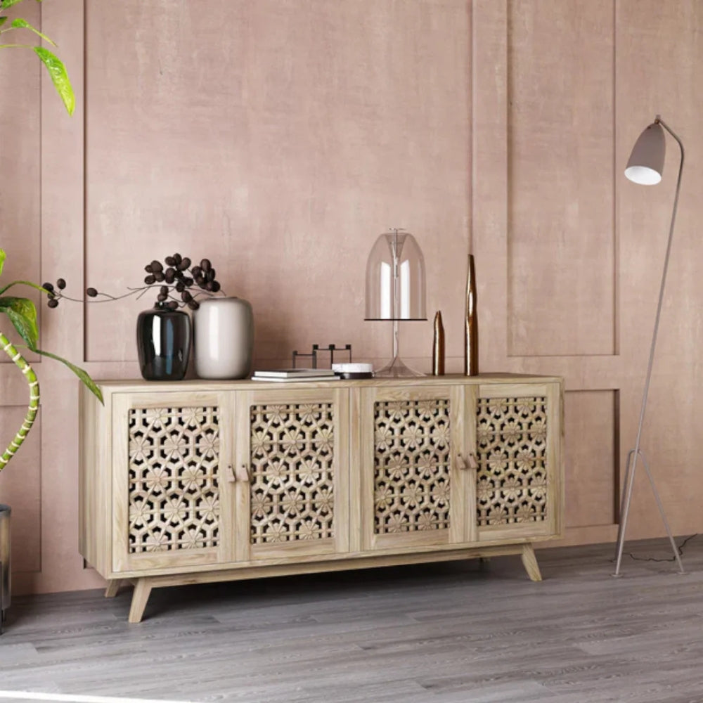 Solid Mango Wood Hand Carved Sideboard & Cabinet