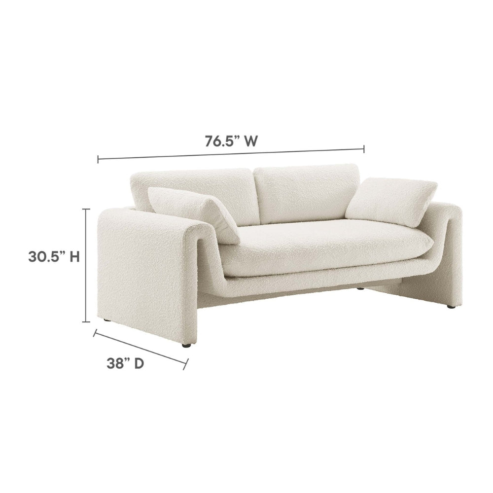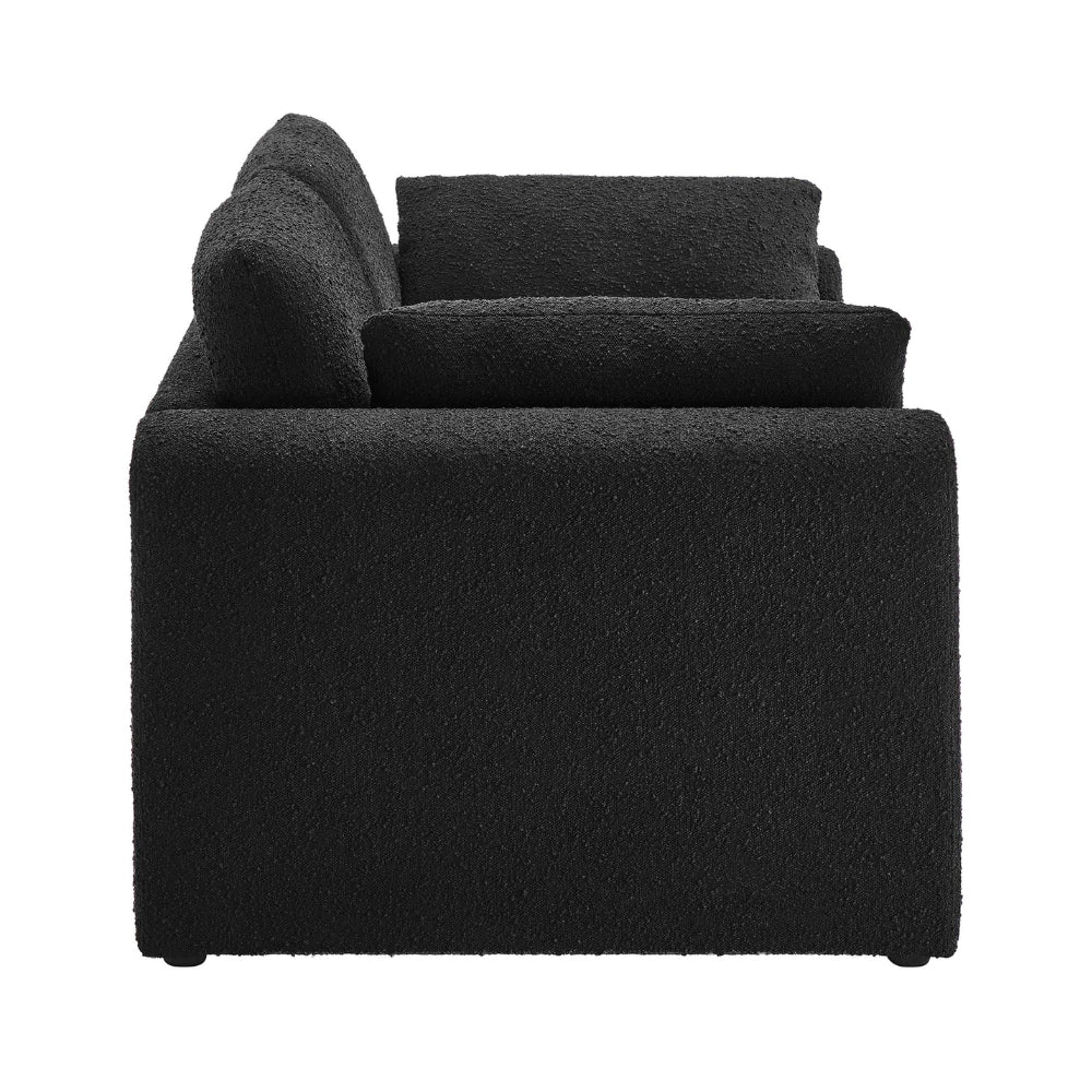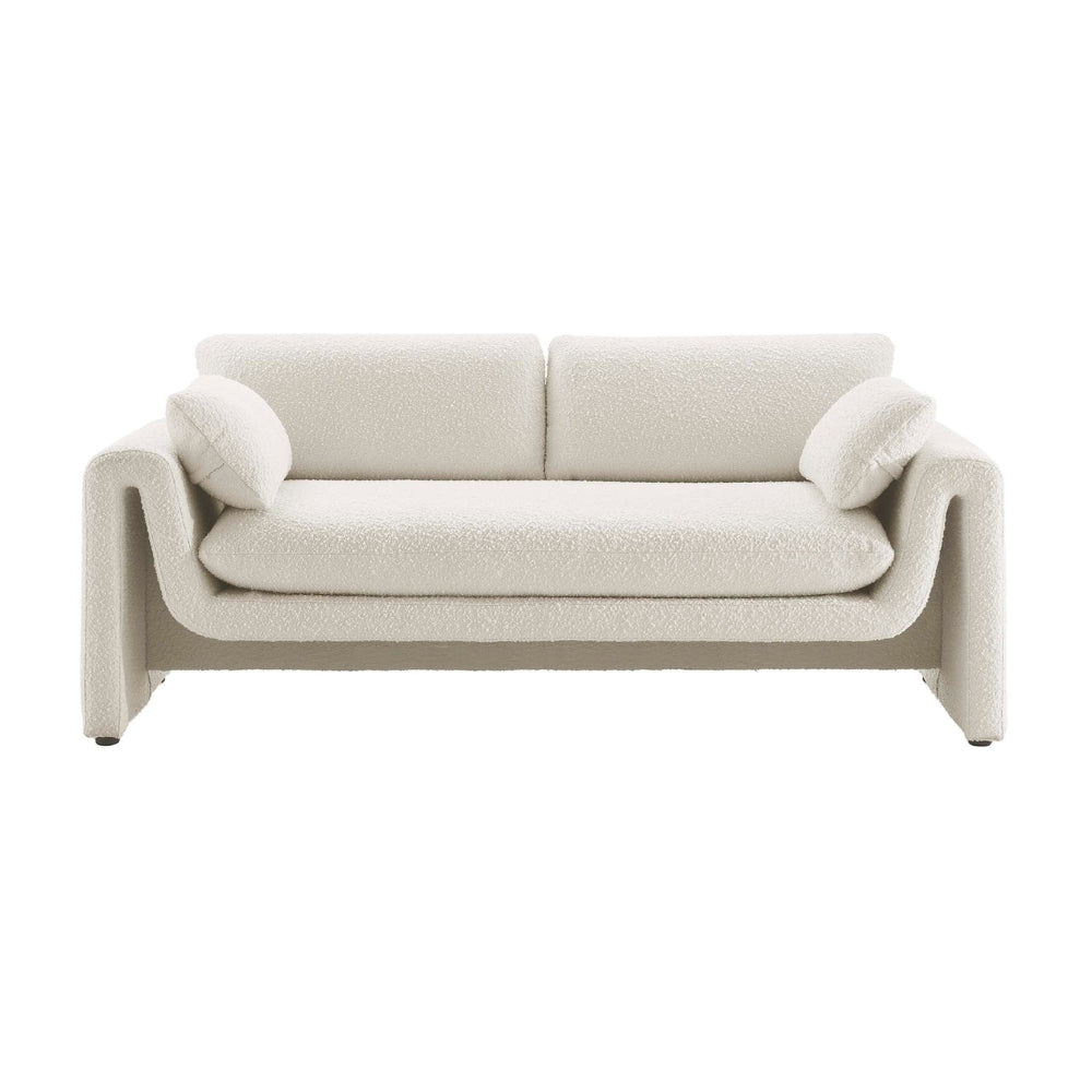 Upholstered in luxurious bouclé fabric, it offers a richly textured surface that feels as inviting as it looks. Inside, dense foam padding provides supportive yet plush seating for everyday relaxation. The thoughtfully proportioned arms and low-profile backrest enhance the sofa’s modern aesthetic, while adjustable non-marking foot pads ensure stability and protect your floors.