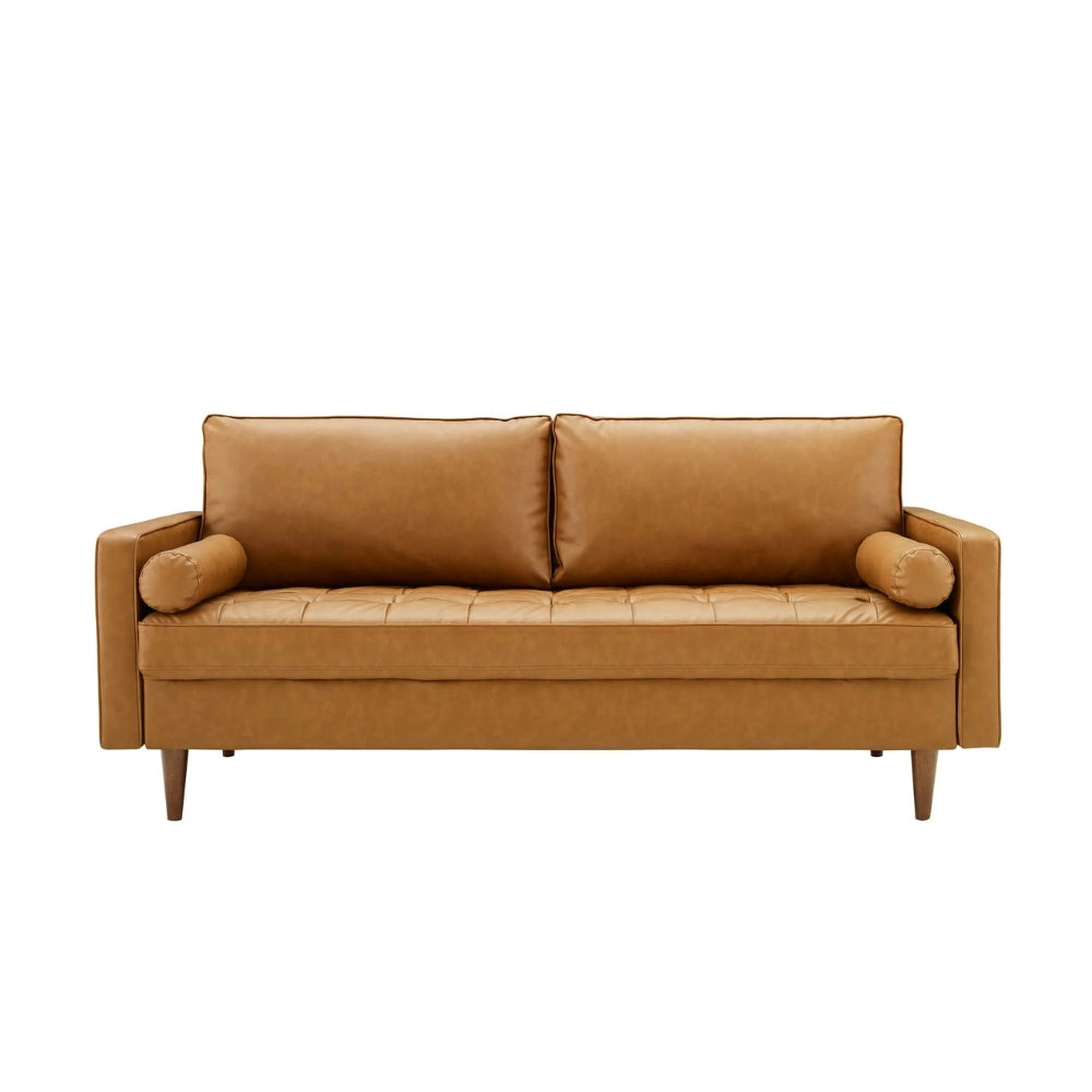 Upgrade your living space with the timeless appeal of the Tatvaacasa Brown Leather Sofa, thoughtfully designed in a mid-century modern silhouette. Upholstered in high-quality faux leather, this sofa delivers the rich look of leather with easy maintenance and everyday durability.