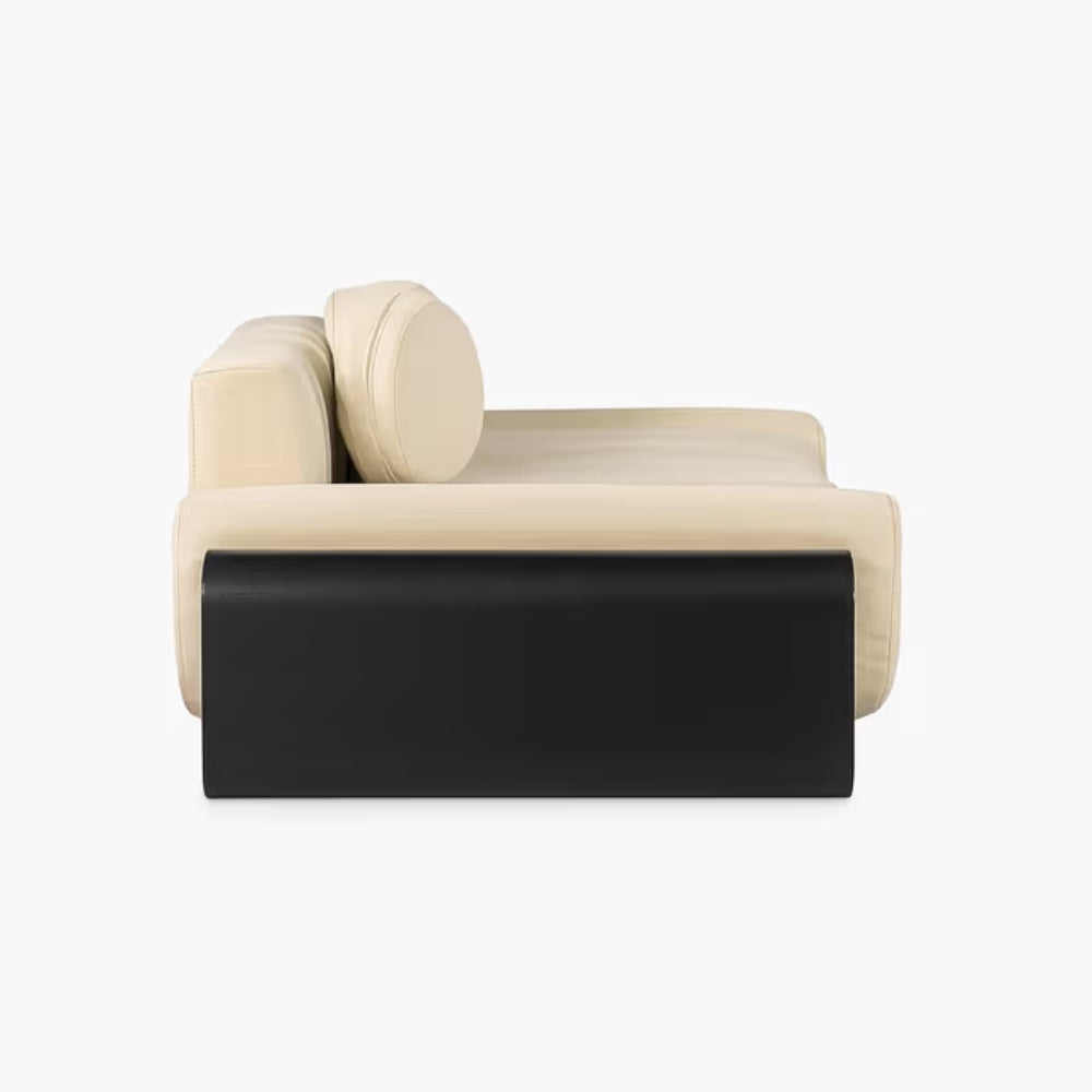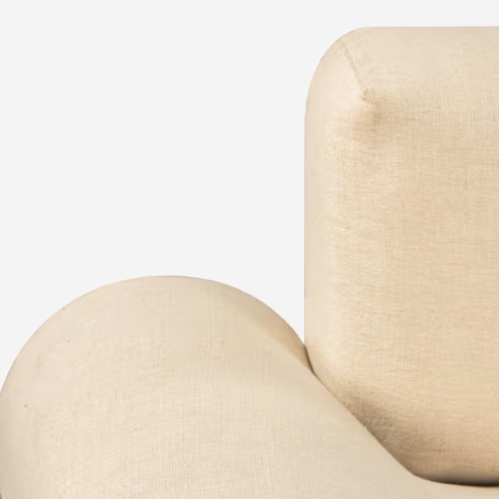 Redefine your living space with the Tatvaacasa Modern Beige Sofa with Circular Back Cushions, a bold expression of contemporary elegance and artistic design. Featuring soft beige upholstery, playful circular back cushions, and striking black curved arms, this sofa effortlessly blends comfort with sculptural aesthetics.