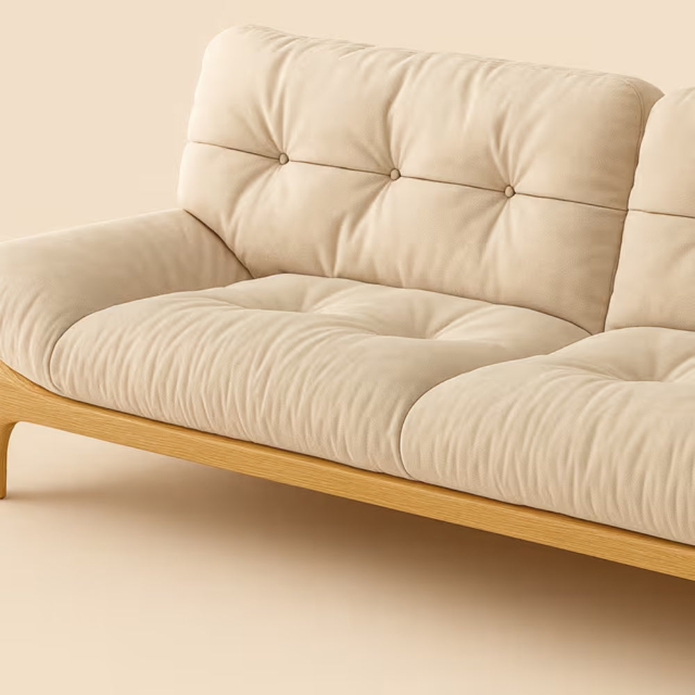 With its generous seating depth and soft cushioning, the Velora Sofa offers an inviting and relaxed lounging experience. The clean lines and warm wooden base enhance its natural appeal, making it a versatile addition to living rooms, lounges, or creative studio spaces. Subtle yet striking, it’s ideal for interiors that value comfort, style, and understated luxury.
