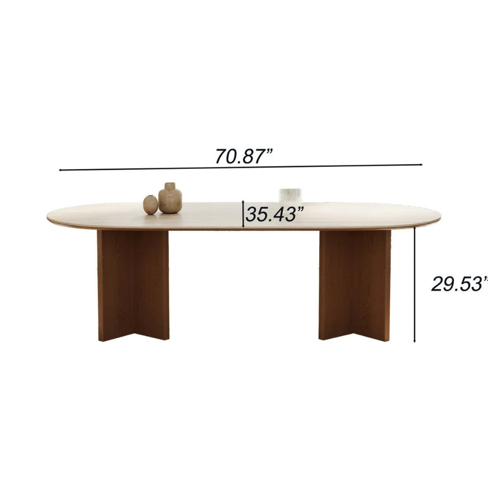 Elevate your dining experience with the Tatvaacasa Oval Wooden Dining Table, designed to bring warmth, elegance, and modern sophistication to your home. Featuring a beautifully finished oval tabletop and a stylish pedestal base, this table creates a luxurious focal point in any dining space.