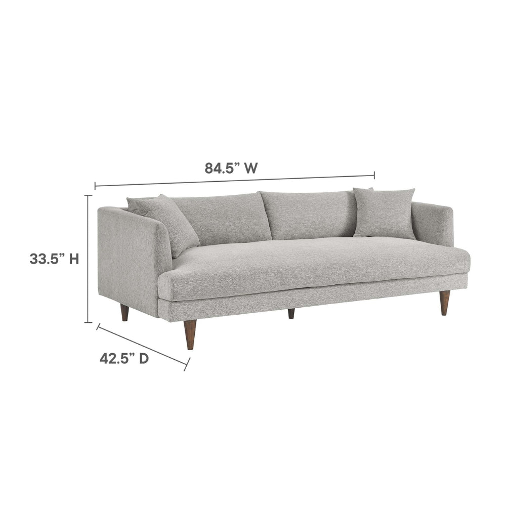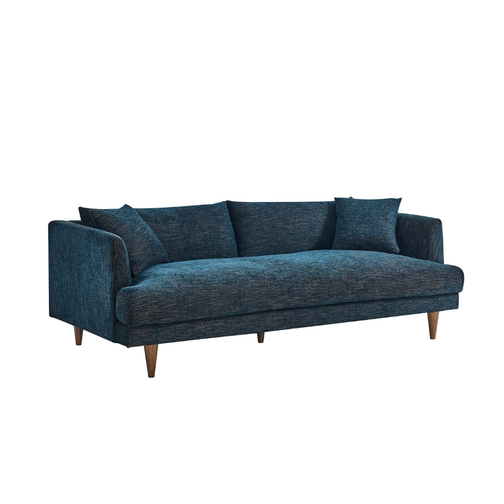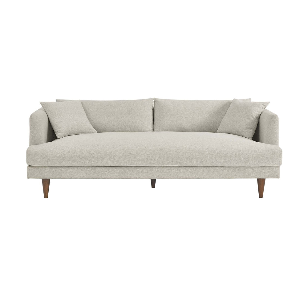 Deep seating with down-blend filled cushions delivers a luxurious sink-in feel, while the supportive pocket spring construction ensures long-lasting comfort and resilience. The removable cushions make everyday maintenance easy, and the clean-lined silhouette is elevated by elegant tapered rubberwood legs, adding warmth and visual balance to the design.