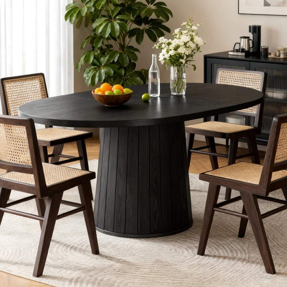 Built with a sturdy structure, it ensures excellent stability and long-lasting durability while supporting up to 300 lbs. The spacious tabletop offers comfortable seating for family meals, gatherings, and celebrations, making it perfect for daily use as well as special occasions. Its rich black wood finish adds a premium, sophisticated look that blends effortlessly with contemporary, luxury, and modern décor styles.