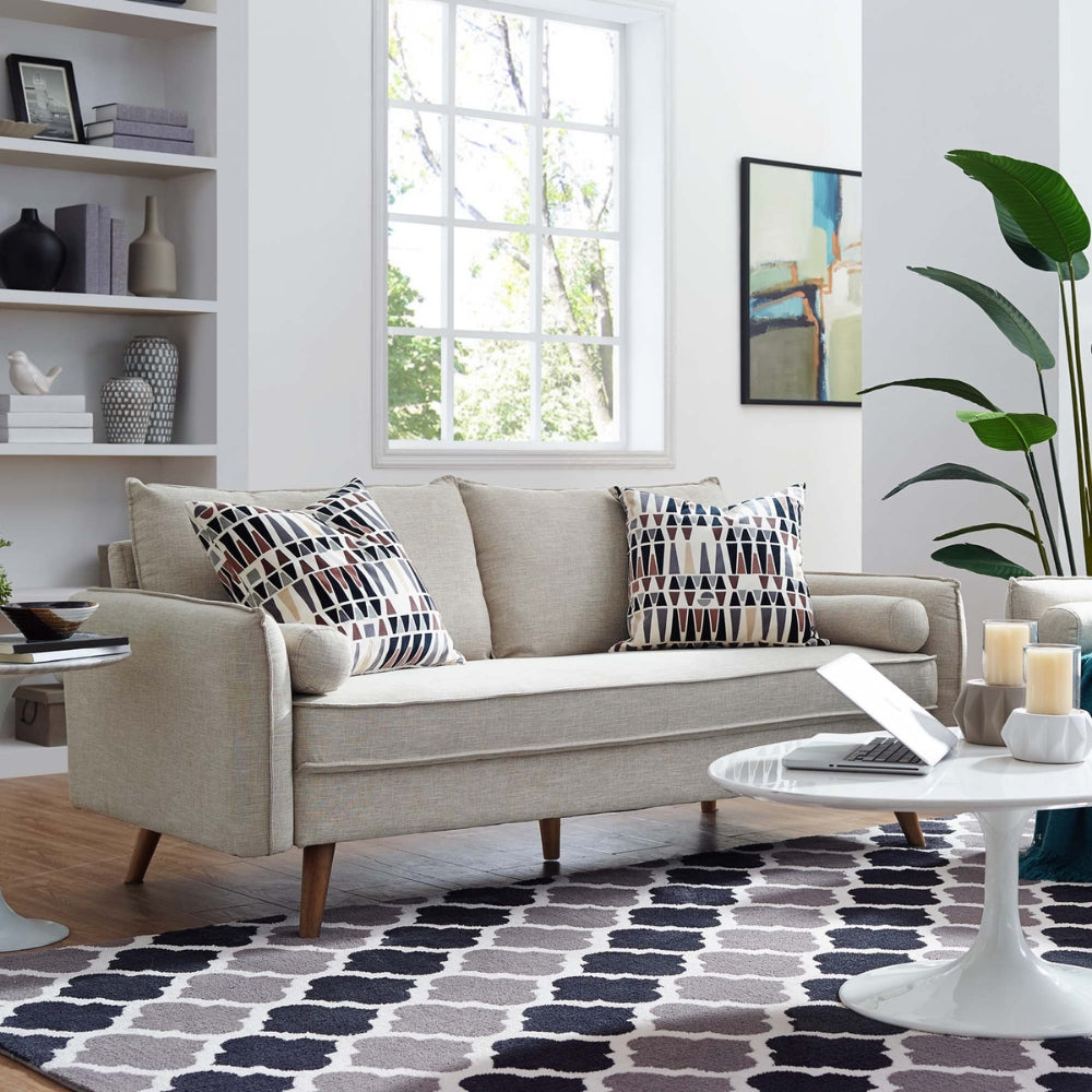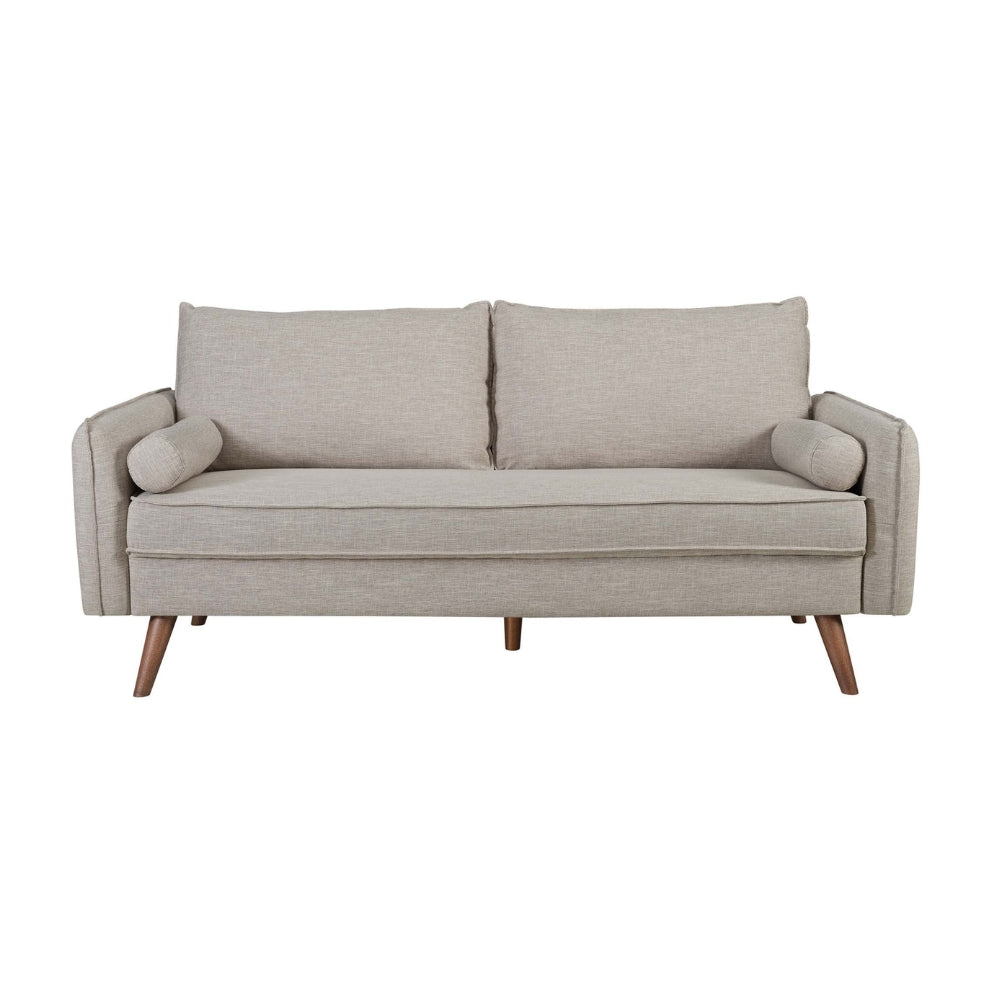 Upholstered in 100% polyester fabric, it offers a soft touch with excellent durability for everyday use. The generously cushioned seating provides supportive comfort, while the structured backrest ensures relaxed lounging. Finished with walnut-stained rubberwood legs, the sofa gains a warm contrast that enhances its modern appeal. Non-marking plastic foot caps protect your flooring, and the sofa conveniently ships in a compact box for easy delivery and setup.