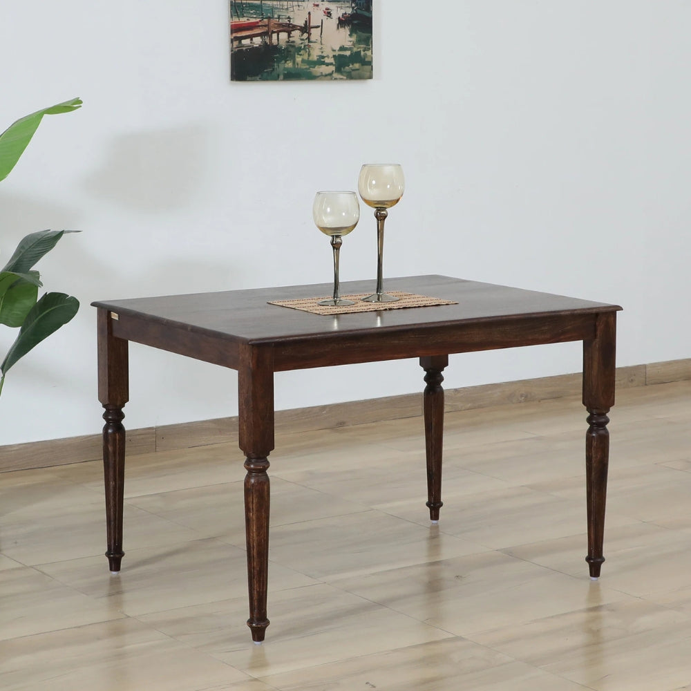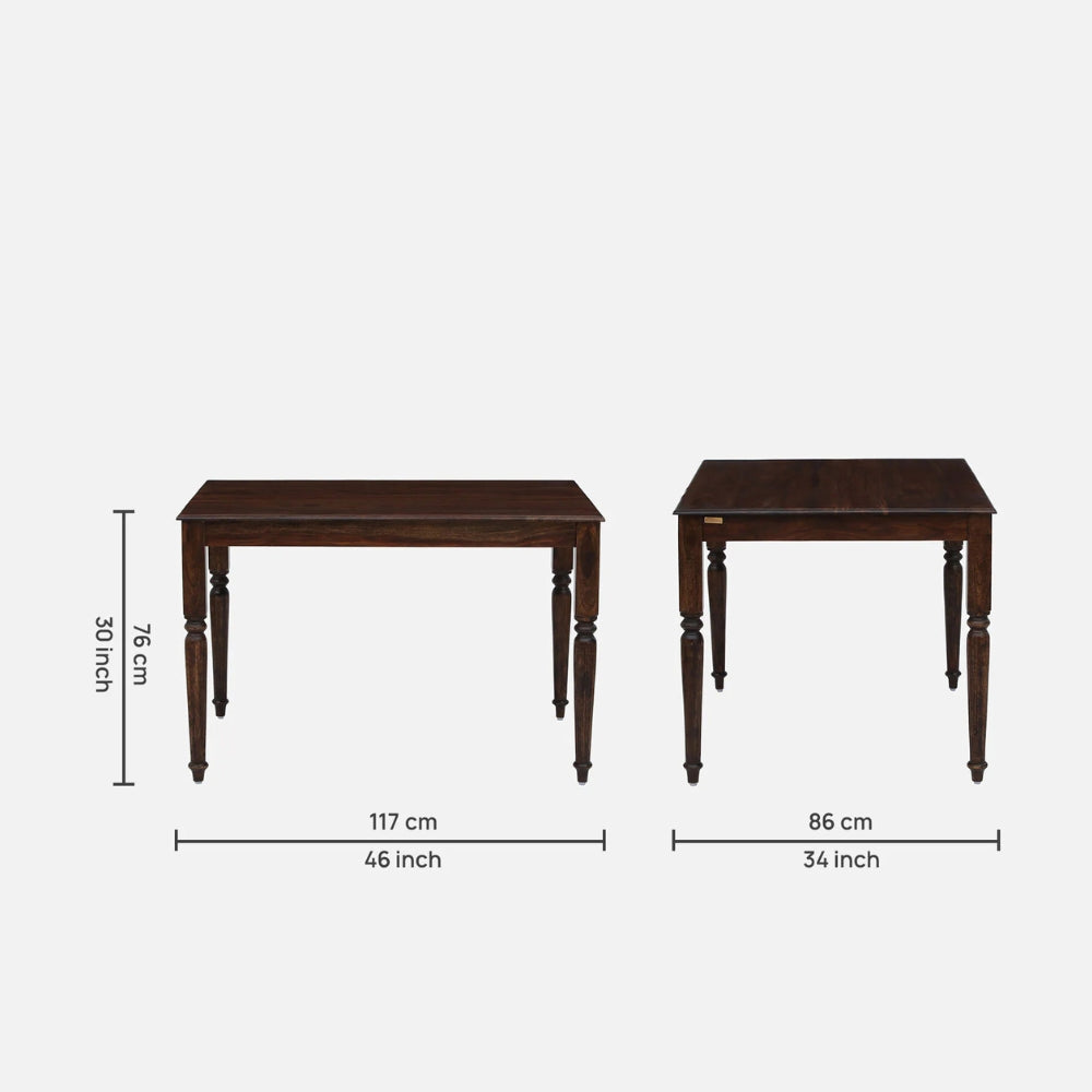 Elevate your dining space with the Tatvaacasa Teak Wood 4 Seater Dining Console Table, crafted from premium teak wood for superior strength and durability. Its sleek tabletop and stylish geometric legs add a modern touch, making it perfect for contemporary homes while ensuring long-lasting elegance and functionality.