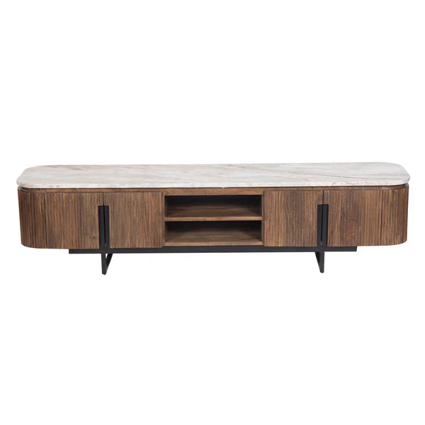 Add a touch of luxury and modern elegance to your living room with this TV Stand with Marble Top, designed to be both a functional media console and a stunning statement piece. Featuring a premium marble tabletop, this TV unit instantly elevates your space with its rich texture, natural veining, and sophisticated appeal. Each marble surface is unique, making every piece one of a kind.