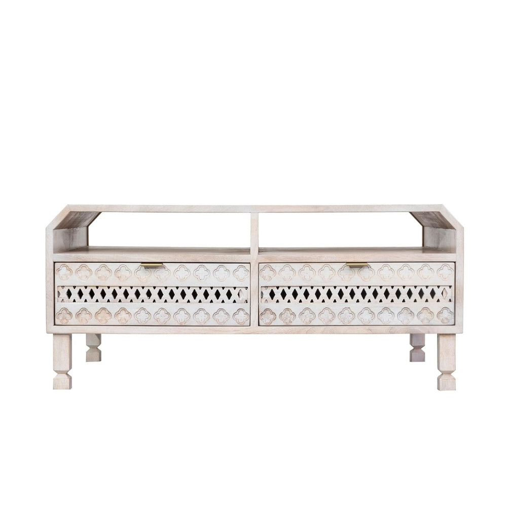 One of its standout features is the four channeled drawers, thoughtfully designed to provide convenient storage for everyday essentials such as remotes, coasters, stationery, or small accessories. This functional storage helps keep your living area organized while maintaining a stylish look.