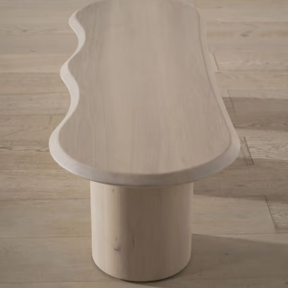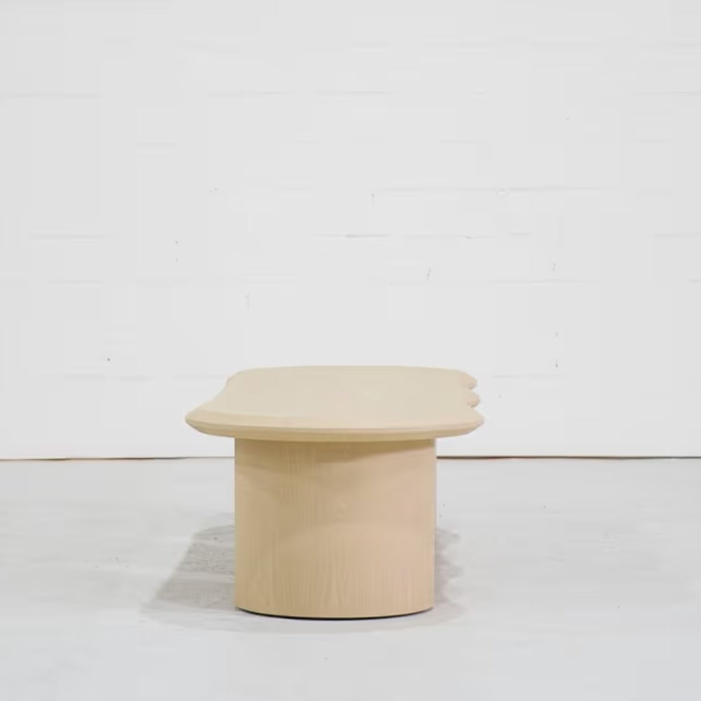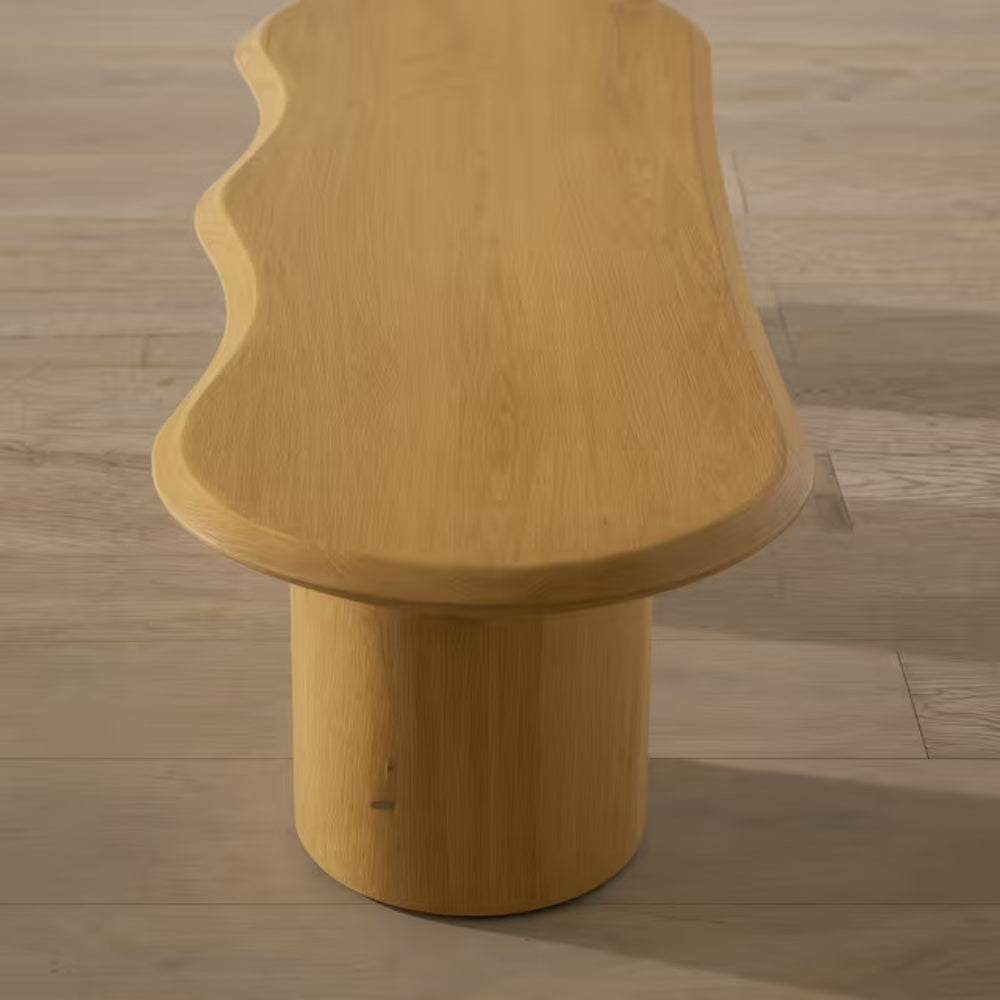 Expertly crafted from solid wood, this coffee table features a pale ash natural finish with subtle honey undertones, enhancing the organic beauty of the wood grain. The fluid, organic-shaped tabletop offers soft, rounded edges that create a relaxed and inviting look, perfect for contemporary living spaces.